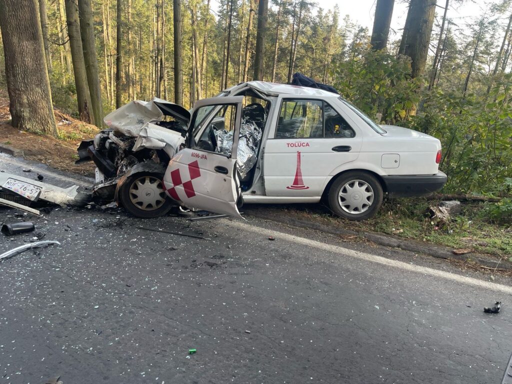 Antonio quedó sin vida a bordo del taxi que conducía después de chocar de manera frontal contra un vehículo, una mujer resultó lesionada y tuvo que ser hospitalizada en la comunidad de Loma Alta en Zinacantepec.