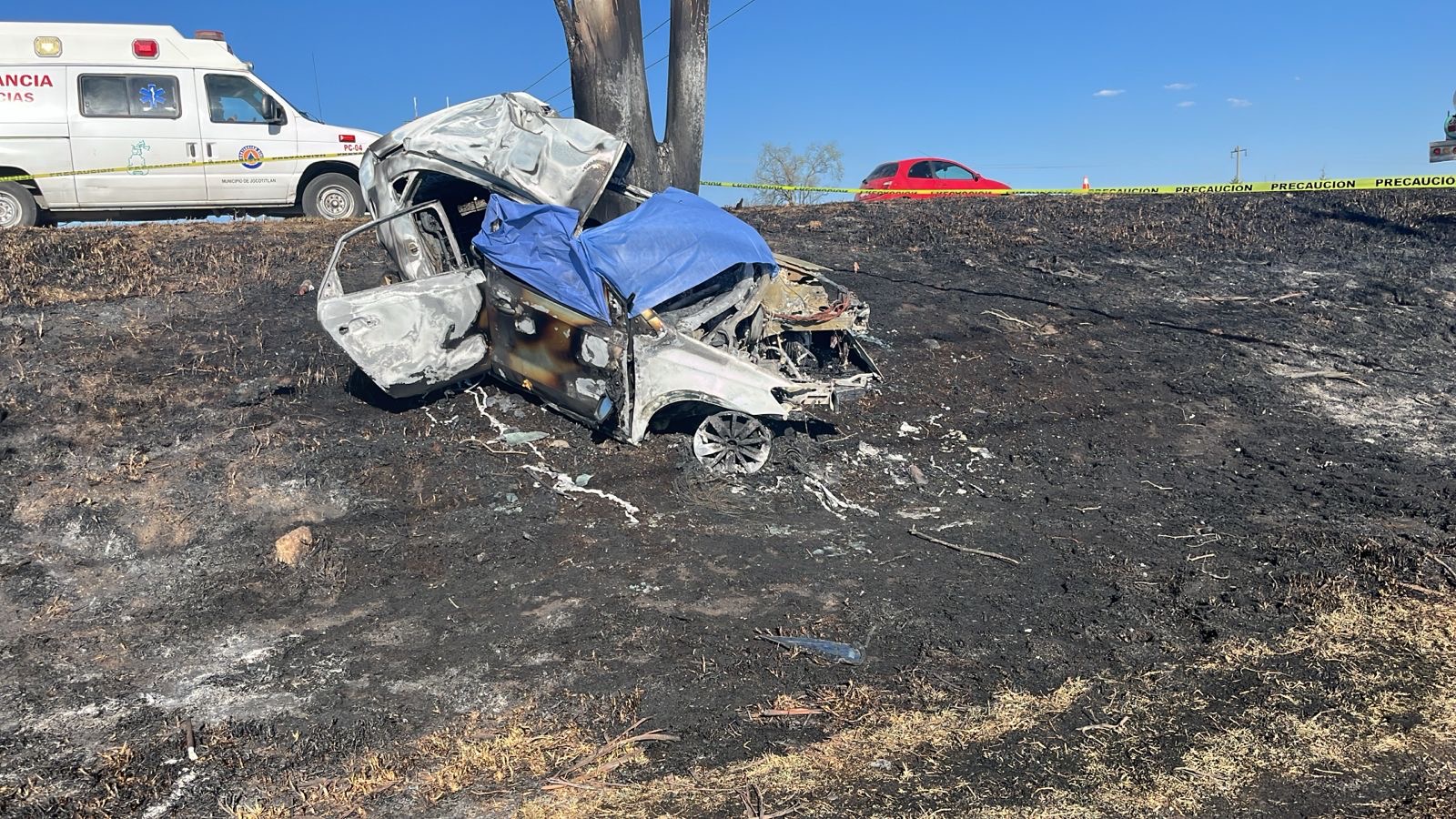 Luego de impactarse contra un árbol, después de salir de la carretera, un vehículo fue consumido por el fuego, al interior se localizaron dos tripulantes calcinados que no pudieron ser identificados en el municipio de Jocotitlán.