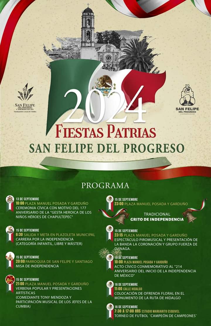 En San Felipe del Progreso, el grupo «Los Jefes de la Cumbia» será el encargado de cerrar la celebración con su música y baile, además de actividades deportivas y gastronómicas.