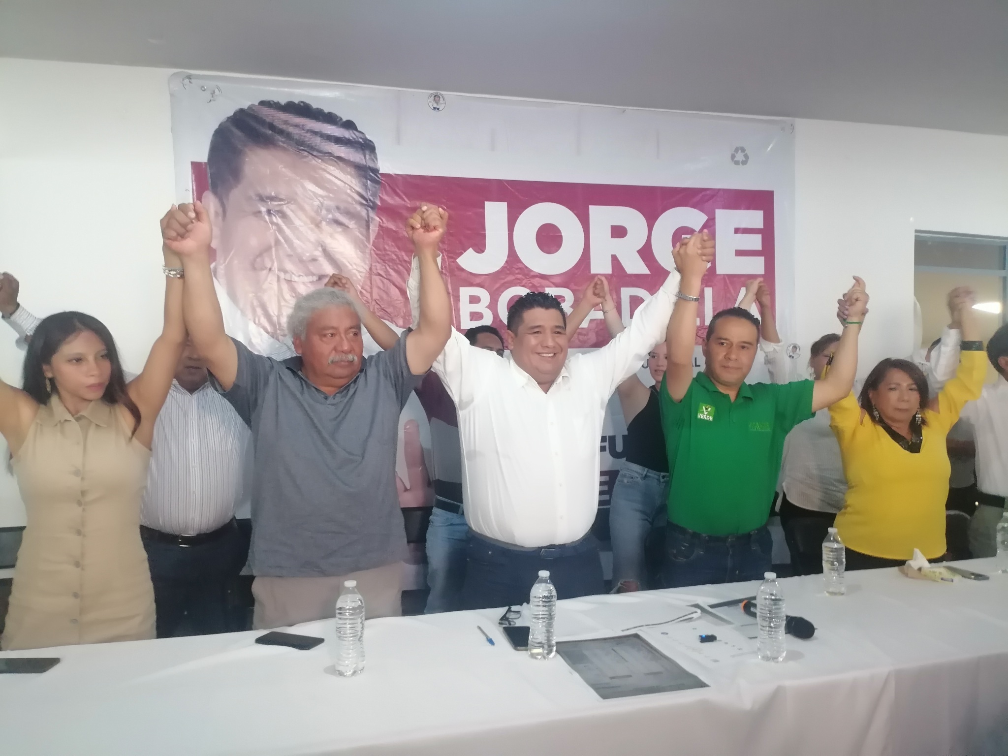 Jorge Luis Bobadilla informó que también buscará al Partido del Trabajo (PT) y con el Partido Verde formar un frente común con el objetivo de defender el triunfo del pueblo.