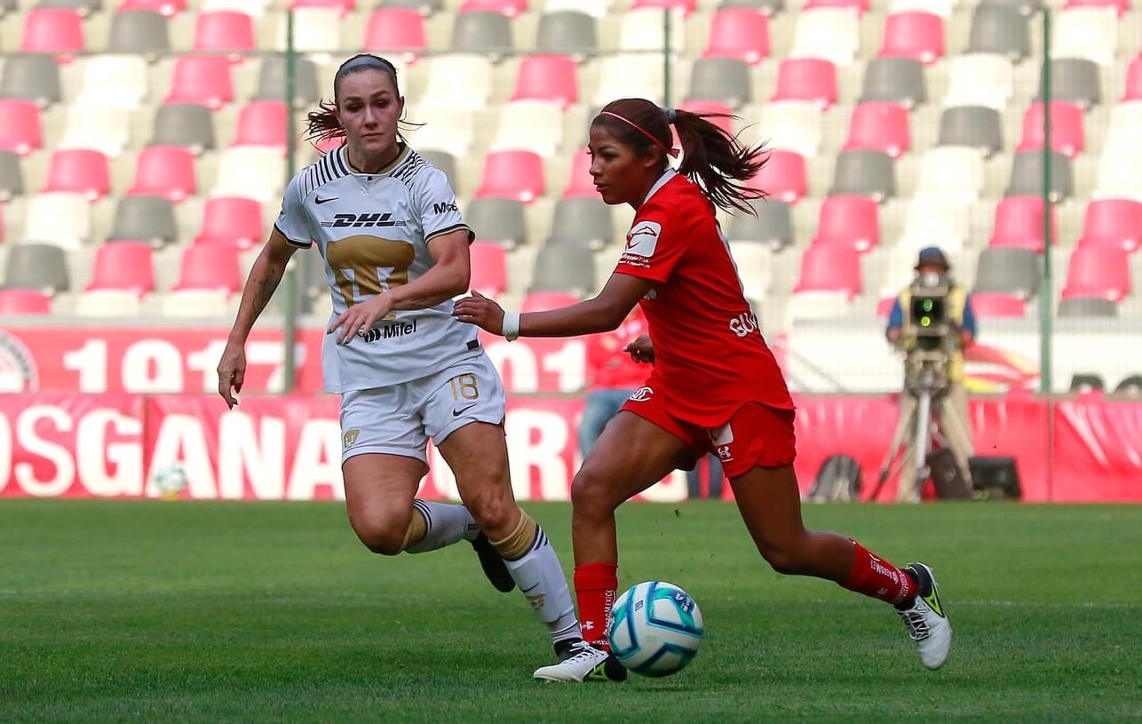 Diablas y Pumas compartieron la posesión del esférico en la primera mitad y desde los primeros minutos se anticipó que sería una dura batalla. El silbante Julio César Gil le perdonó la expulsión a la norteamericana de las universitarias, Chandra Eigenberger, quien en la pelea por la esférica conectó un codazo al ojo izquierdo de la toluqueña Diana Guatemala.