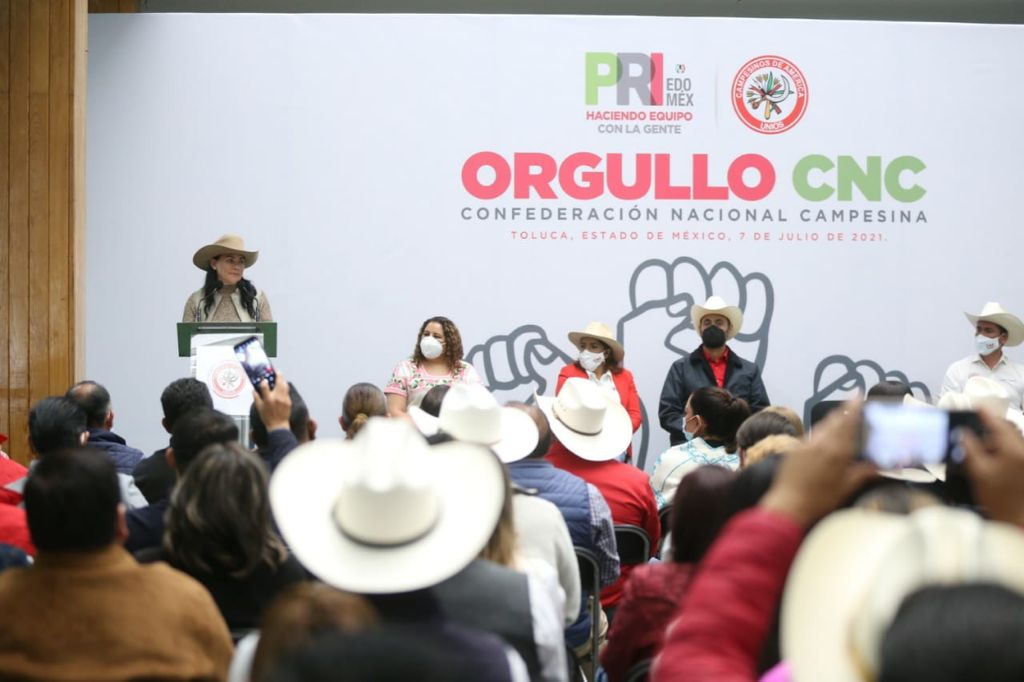 “Nuestro reto, nuestra responsabilidad, nuestro deber como priistas, como mexiquenses y como mexicanos es que en el Estado de México siga gobernando el Partido Revolucionario Institucional”, señaló Alejandra Del Moral Vela, dirigente estatal del PRI, ante integrantes de la Confederación Nacional Campesina (CNC) encabezados por los líderes nacional y estatal, Ismael Hernández Deras, y Edgar Castillo Martínez.
