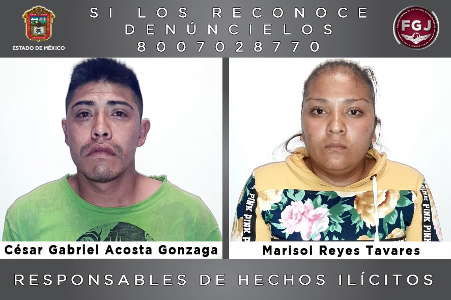 Después de revisar los elementos de prueba recabados y aportados por esta Representación Social, un Juez con sede en Cuautitlán dictó una condena de 27 años y tres meses de prisión para Marisol Reyes Tavares y le fijó una multa de 86 mil 880 pesos. En tanto que César Gabriel Acosta Gonzaga fue condenado a 13 años y tres meses de cárcel, además deberá pagar también una multa de 86 mil 880 pesos.