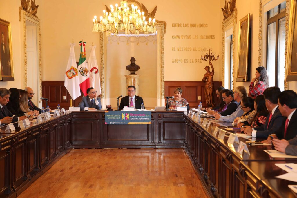 A la sesión asistieron integrantes del Consejo de la Judicatura; Irma Sosa Solís, Directora General de Desarrollo Regional Valle de Toluca de la Secretaría del Bienestar; Alberto Cervantes Juárez, Director General del Instituto de la Defensoría Pública; y Manuel Quiñones Flores, encargado de la Vocalía Ejecutiva del Consejo Estatal para el Desarrollo Integral de los Pueblos Indígenas.