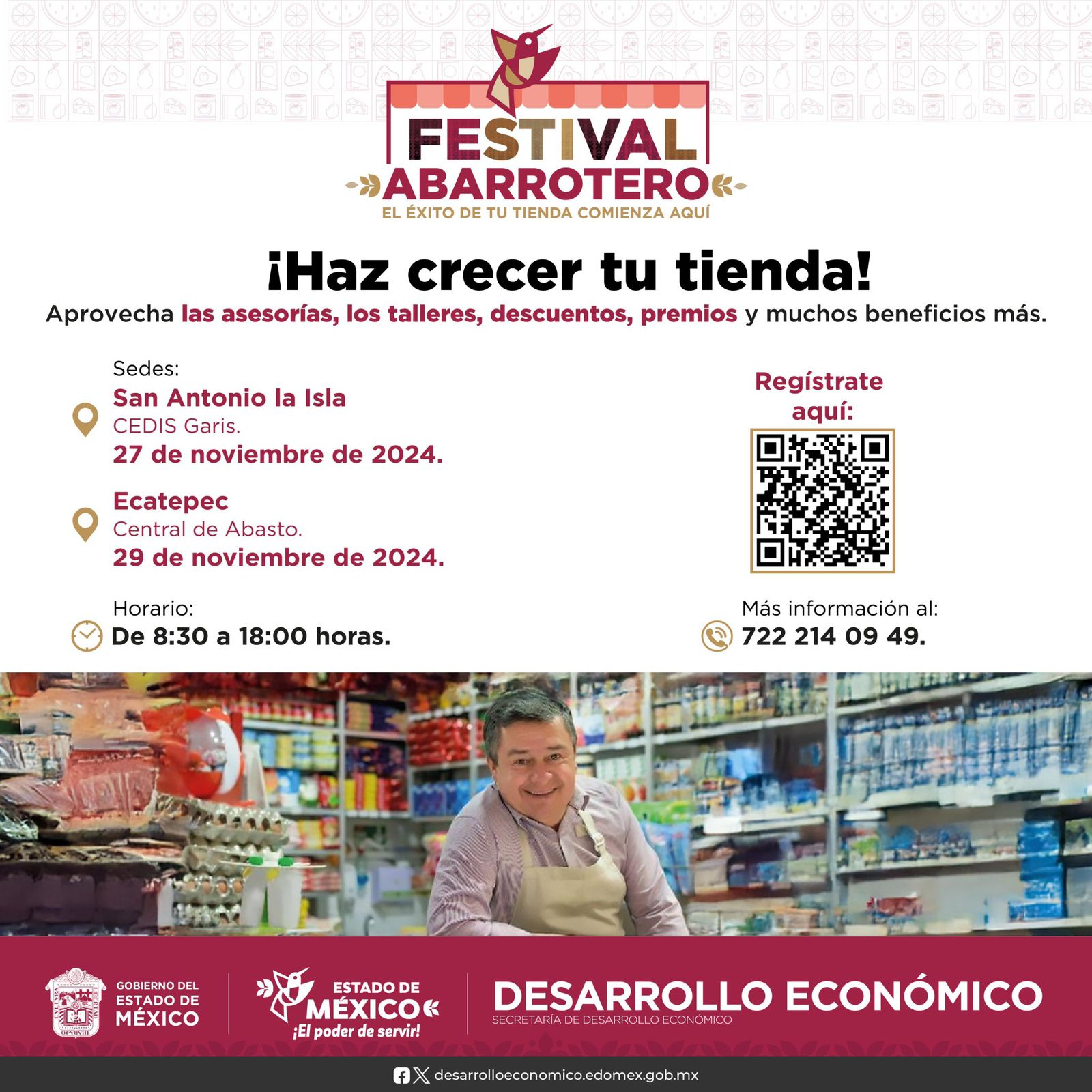 La Secretaría de Desarrollo Económico, dirigida por Laura González Hernández, a través de la Dirección de Comercio invita a propietarios de tiendas tradicionales al primer “Festival Abarrotero”, que busca impulsar el comercio minorista y contribuir al crecimiento de la economía del Estado de México.