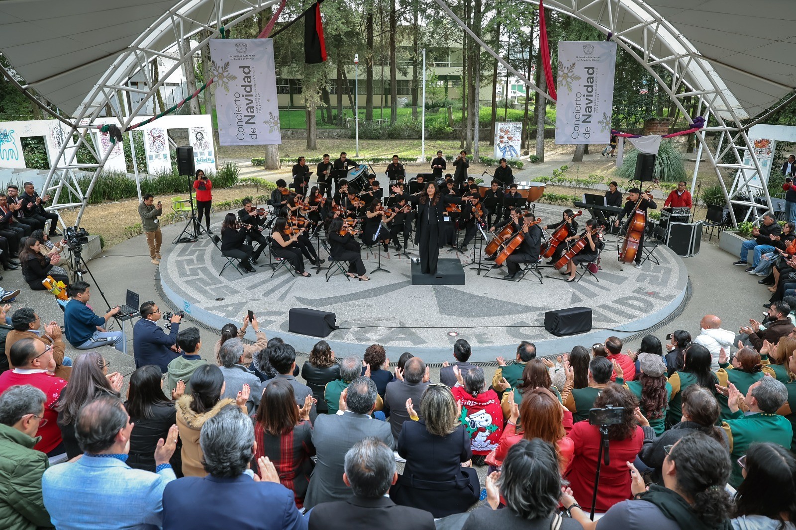La Orquesta Sinfónica Juvenil de la Universidad Autónoma del Estado de México (OSJUAEM) iluminó el Ágora de Cénide, en Ciudad Universitaria, con el concierto especial “Luz de Invierno”, una velada que celebró la música como punto de encuentro, pluralidad y esperanza. Bajo la dirección de Hilda Saquicoray Ávila, la agrupación —integrada por estudiantado universitario— ofreció su segundo concierto de navidad, envolviendo a Ciudad Universitaria en un ambiente festivo y cálido.