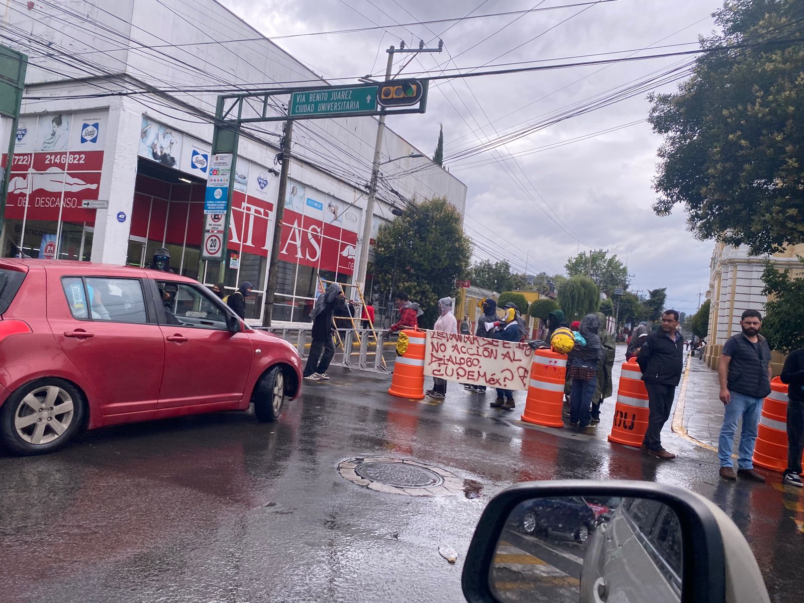 Tras la ruptura, los universitarios retomaron las movilizaciones y bloquearon calles del centro de Toluca, lo que generó un importante caos vehicular. Los puntos cerrados por los manifestantes incluyeron los cruces de las avenidas Juárez y Morelos, así como Gómez Farías y Rayón, afectando la circulación en una de las zonas más transitadas de la capital mexiquense.