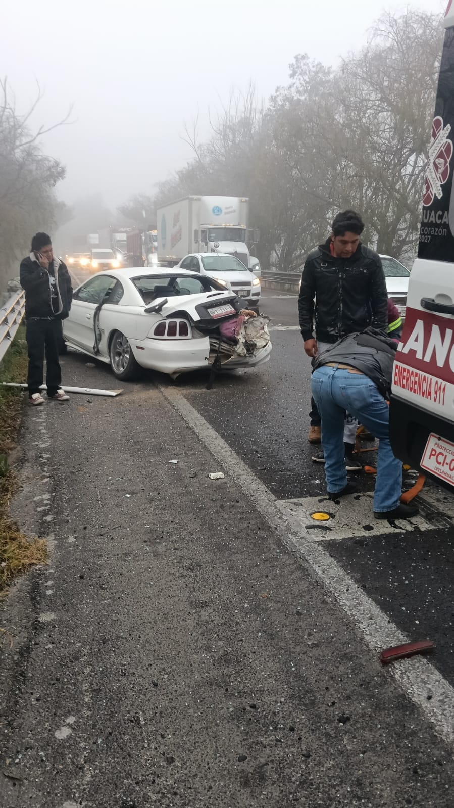 El personal especializado realizó labores de verificación de daños, control de tránsito y apoyo a los automovilistas que circulaban por la zona, donde la neblina que se registro las primeraa horas del día impedia la correcta visibilidad, lo que se presume una de las causas que provocó el accidente.