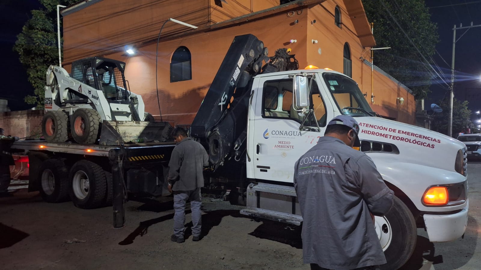 Al lugar llegaron cuatro unidades de presión succión hidroneumáticos tipo Vactor, dos pipas de agua y dos plataformas enviadas por la Comisión Nacional del Agua (Conagua), con dos minicargadores tipo BobCat de CAEM, con sus respectivos operadores, para atender anegamientos de agua y remoción de lodos.