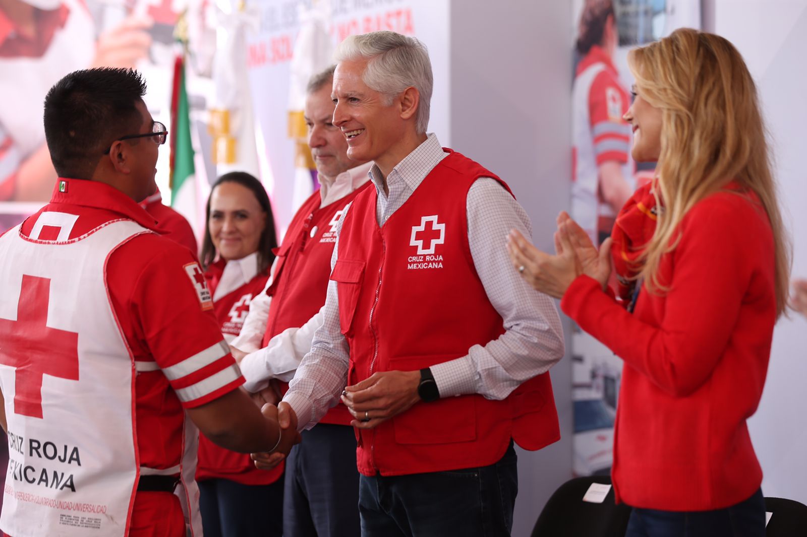 El Gobernador Alfredo Del Mazo Maza y su esposa y Presidenta Honoraria del DIFEM, Fernanda Castillo, iniciaron la Colecta de la Cruz Roja en el Estado de México 2022, mediante la cual se busca fortalecer e incentivar el trabajo de esta institución, que ante emergencias es un primer auxilio que ha salvado muchas vidas.