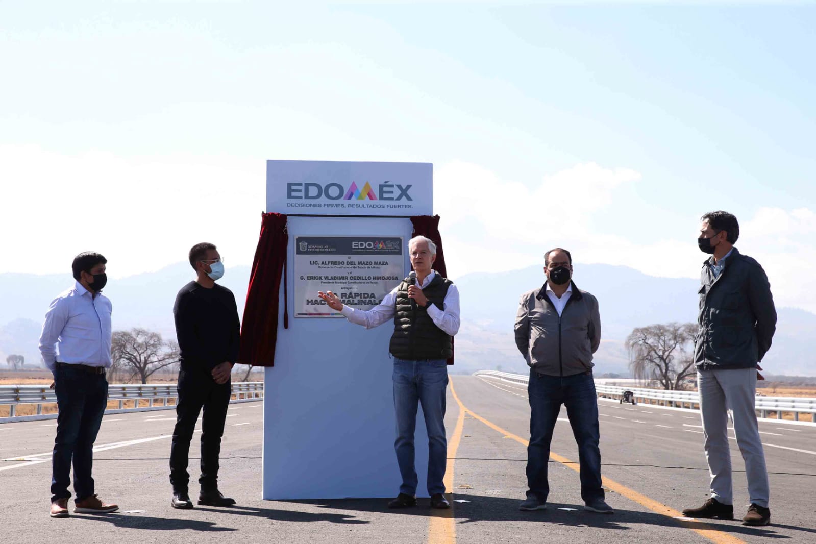 Acompañado por Erick Cedillo Hinojosa, Presidente municipal de Rayón, Alfredo Del Mazo destacó también que esta nueva vialidad, cuya construcción está a cargo de Grupo Hermes, acortará los tiempos de traslado de quienes viajan de Toluca o la Ciudad de México, a Malinalco, lo cual fomentará la vocación turística de este Pueblo Mágico mexiquense.
