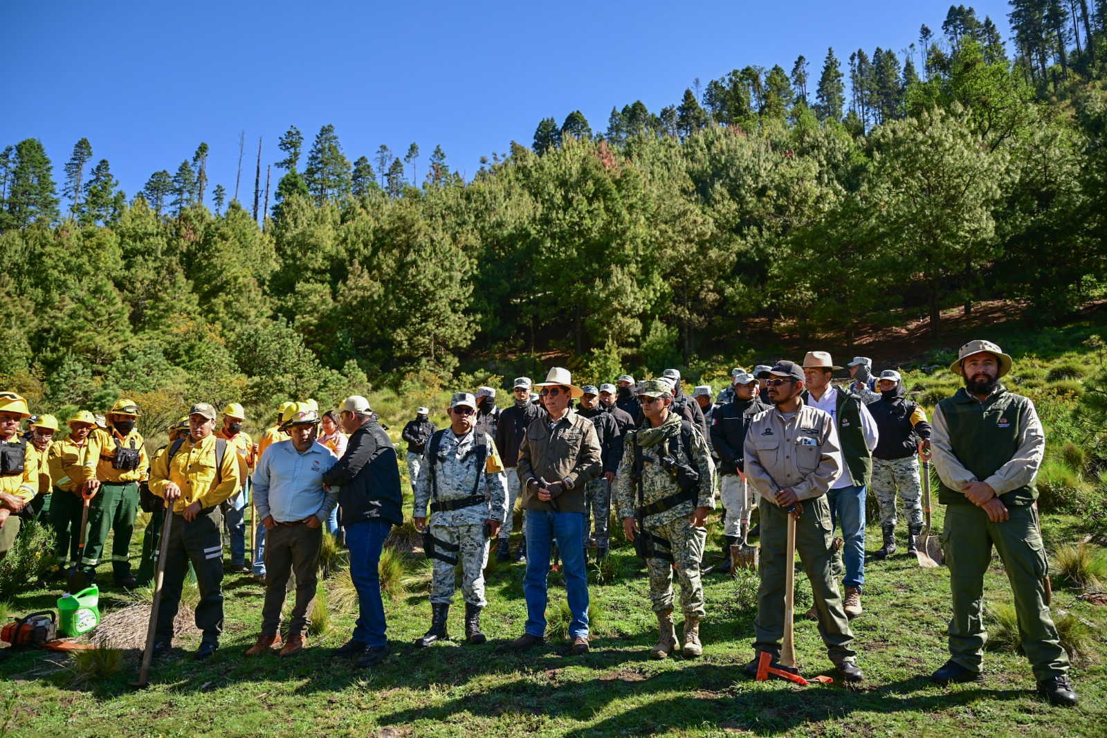 La actividad se llevó a cabo en coordinación con propietarios, autoridades estatales, la Secretaría de la Defensa Nacional, Guardia Nacional y la Secretaría de Seguridad estatal, quienes llevaron a cabo labores de acomodo de material vegetal para retener la erosión, prevenir incendios, así como apertura de cepas para preparar el terreno donde posteriormente se establecerán nuevos árboles.
