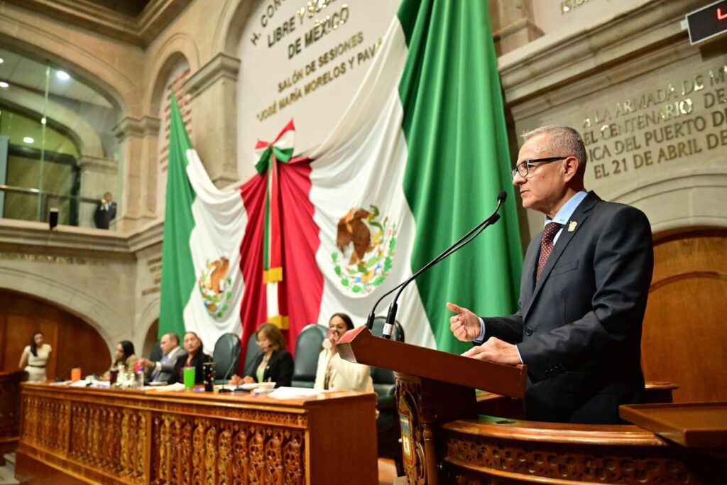 “La administración de la Maestra Delfina Gómez Álvarez, ha asumido este problema como una auténtica y determinante política de estado, esta administración no va a evadir el problema, ni va a optar por simulaciones, vamos a actuar bajo tres principios rectores que son honestidad, justicia social y responsabilidad fiscal”, señaló Óscar Flores Jiménez, Secretario de Finanzas, durante comparecencia en la Legislatura local.
