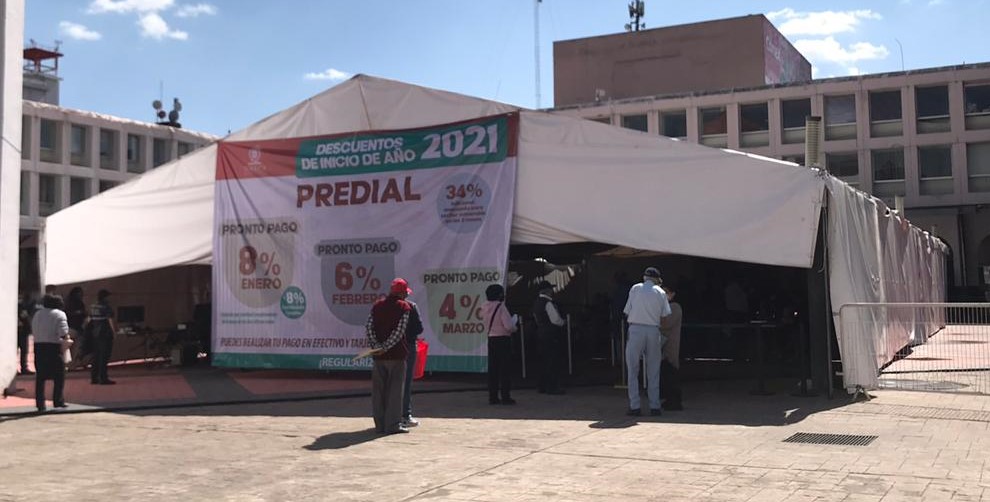 El gobierno municipal de Toluca instaló una carpa en la explanada de la Plaza Fray Andrés de Castro para el pago del impuesto predial, donde se habilitó una zona exclusiva para la atención a adultos mayores, lo que permite que el proceso sea más ágil y con las medidas recomendadas por las autoridades de salud.