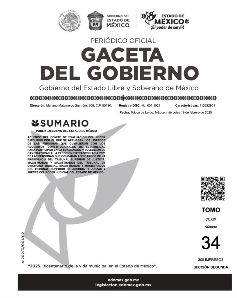 El listado oficial puede ser consultado a través del Periódico Oficial “Gaceta del Gobierno” en la página: legislacion.edomex.gob.mx; así como en el micrositio oficial del proceso de elección: registroeleccionjudicial.mx.