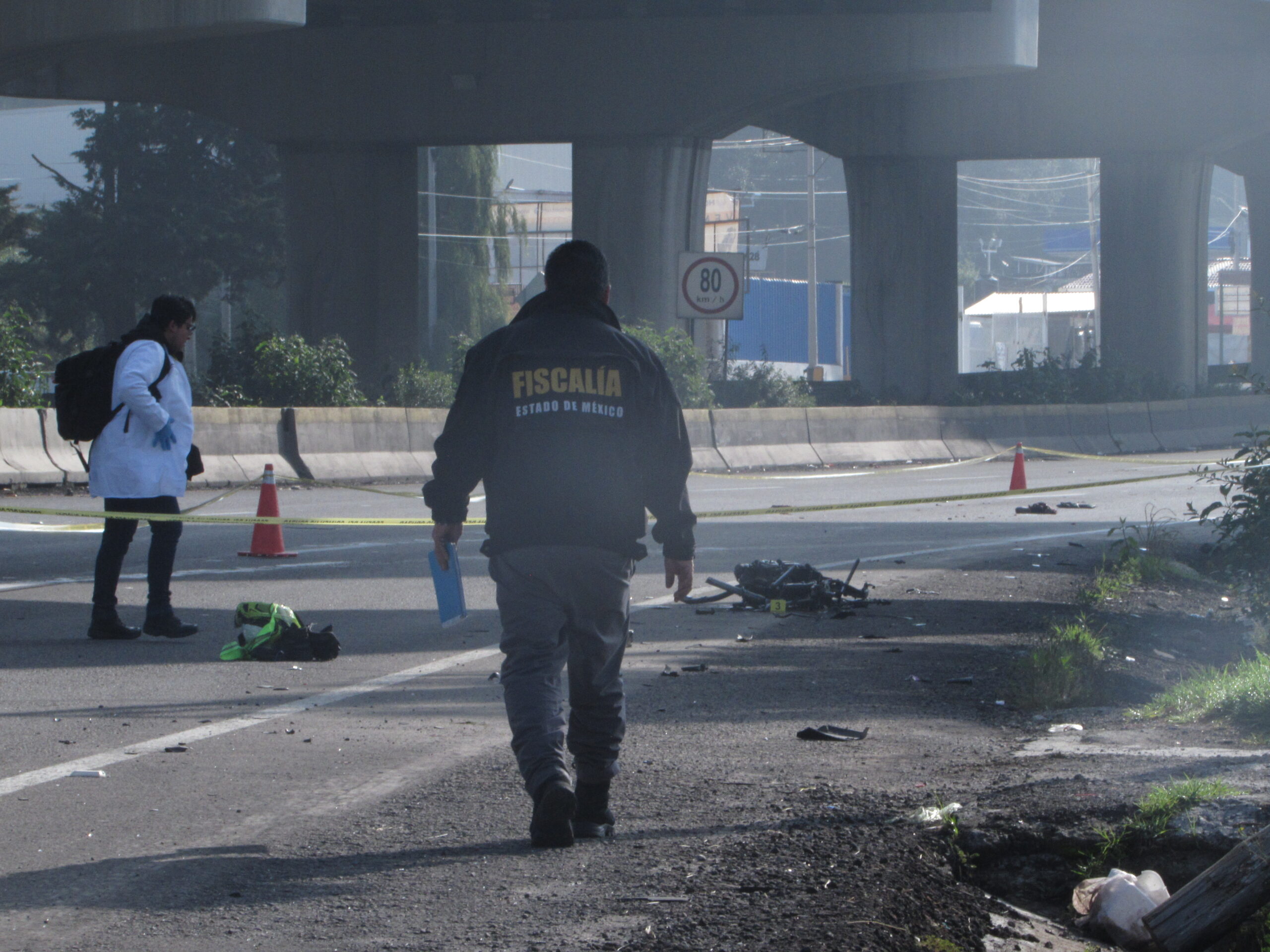 El cuerpo de un motociclista, terminó deshecho después de derrapar y luego varios vehículos le pasaron por encima en el paraje Río Hondito en Ocoyoacac; por la condición en que estaba no pudo ser identificado.