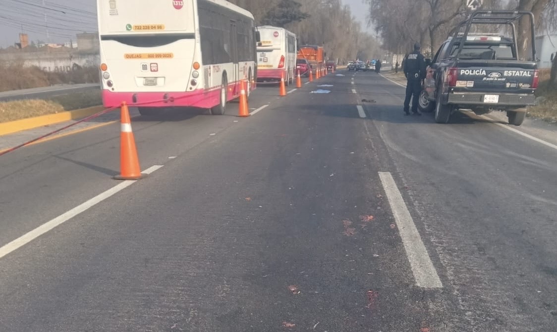 Los restos humanos quedaron regados en un radio de más de cien metros sobre la vialidad Toluca Tenango del Valle a la altura del fraccionamiento Rancho San Antonio, eran minutos antes de las 07:00 horas del lunes.