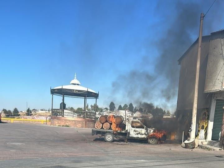 Luego de detectar una camioneta cargada con trozos de madera ilegal, pobladores de San Miguel Mimiapan en Xonacatlán, se organizaron para prenderle fuego en la explanada principal aseguran es propiedad de talamontes.