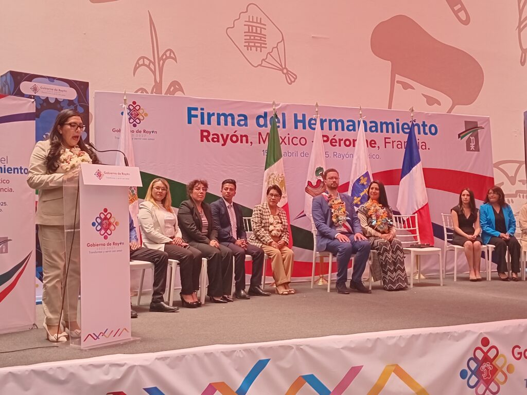 Por primera vez en la historia del Estado de México, el municipio de Rayón formalizó un hermanamiento con la ciudad francesa de Péronne. La firma del acuerdo tuvo lugar este martes encabezada por la presidenta municipal de Santa María Rayón, Edna Talavera Mercado marcando una inmediata cooperación internacional a nivel local.“Este es un día que quedará grabado en la historia de Rayón. Establecer esta conexión con Péronne nos abre la puerta a intercambios culturales, educativos y estratégicos con un enfoque sostenible”, expresó. La alcaldesa subrayó el impacto positivo que este acuerdo traerá para la comunidad: “Estamos convencidos de que este hermanamiento impulsará no solo a nuestros artesanos, sino también a las nuevas generaciones de rayonenses que heredarán estos vínculos de cooperación”.Talavera Mercado también aprovechó la ocasión para reconocer el trabajo de su equipo, destacando su compromiso a pesar de la temporada vacacional.“Agradezco profundamente el esfuerzo de todos. Aquí seguimos trabajando con responsabilidad”.Este acuerdo internacional se convierte en el primero en su tipo entre un municipio del Estado de México y una ciudad de Francia, abriendo nuevas rutas de colaboración entre ambas comunidades y consolidando a Rayón como un referente en materia de relaciones exteriores a nivel local.