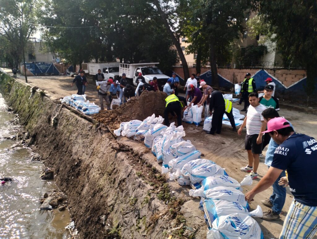 Además, personal de Servicios Públicos como la Policía Estatal, trabajan en el llenado de costaleras, para ser colocadas al borde del río y así evitar contener un posible desbordamiento.