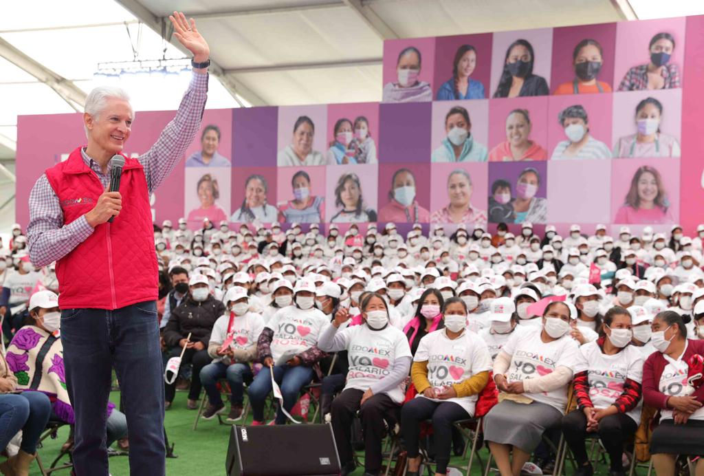 *En los campos de fútbol del Deportivo 20 de Noviembre, donde se dieron cita mujeres de las regiones Ixtlahuaca y Atlacomulco, el Gobernador mexiquense afirmó que en esta época, el apoyo que brinda el Salario rosa ayuda a las mujeres y a sus familias a enfrentar los retos que ha dejado la pandemia por COVID-19.