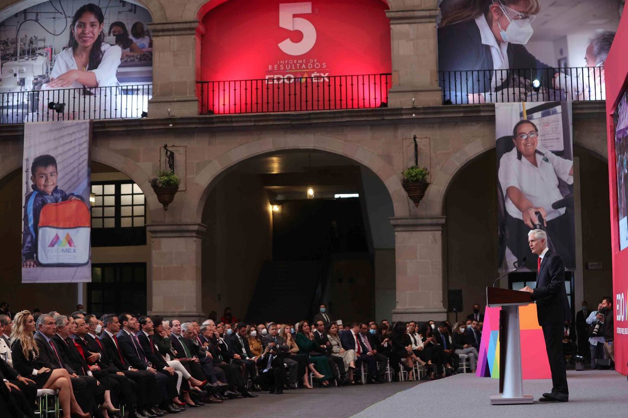 Al presentar su Quinto Informe de Resultados, en el Patio Central de Palacio de Gobierno, Del Mazo Maza enumeró los avances de su administración en materia de seguridad, y recordó que, desde el inicio del presente sexenio, su Gobierno asumió como el mayor de los compromisos trabajar para brindar más tranquilidad al pueblo mexiquense.