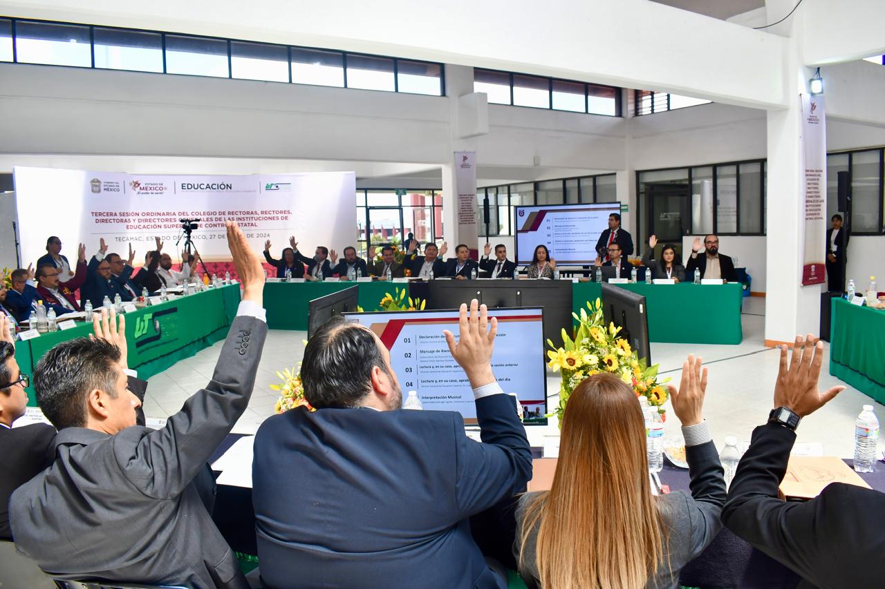 Como parte de estas acciones de realizó la Tercera Sesión Ordinaria del Colegio de Rectoras, Rectores, Directoras y Directores Generales de las Instituciones de Educación Superior de Control Estatal, la cual fue presidida por el Maestro Víctor Sánchez González, Subsecretario de Educación Superior y Normal de la SECTI.