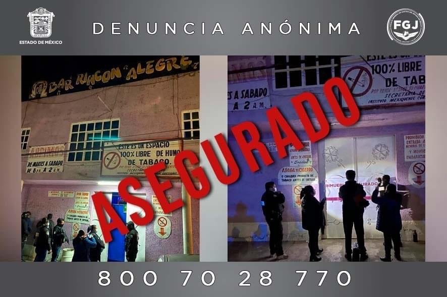 La Fiscalía General de Justicia del Estado de México (FGJEM) aseguró un establecimiento en este municipio, donde presumiblemente se realizaba el delito de trata de personas, en su modalidad de explotación sexual a través de la prostitución.