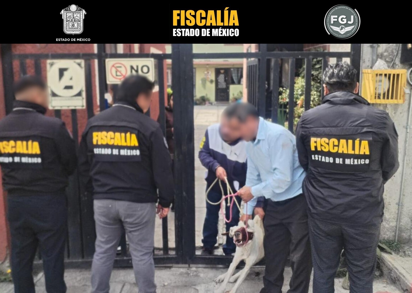 Por el presunto delito de maltrato animal, elementos de la Fiscalía General de Justicia del Estado de México, Policía Municipal y Centro de Bienestar Animal dieron cumplimiento a una orden de técnica de investigación de cateo para rescatar a un ejemplar canino.