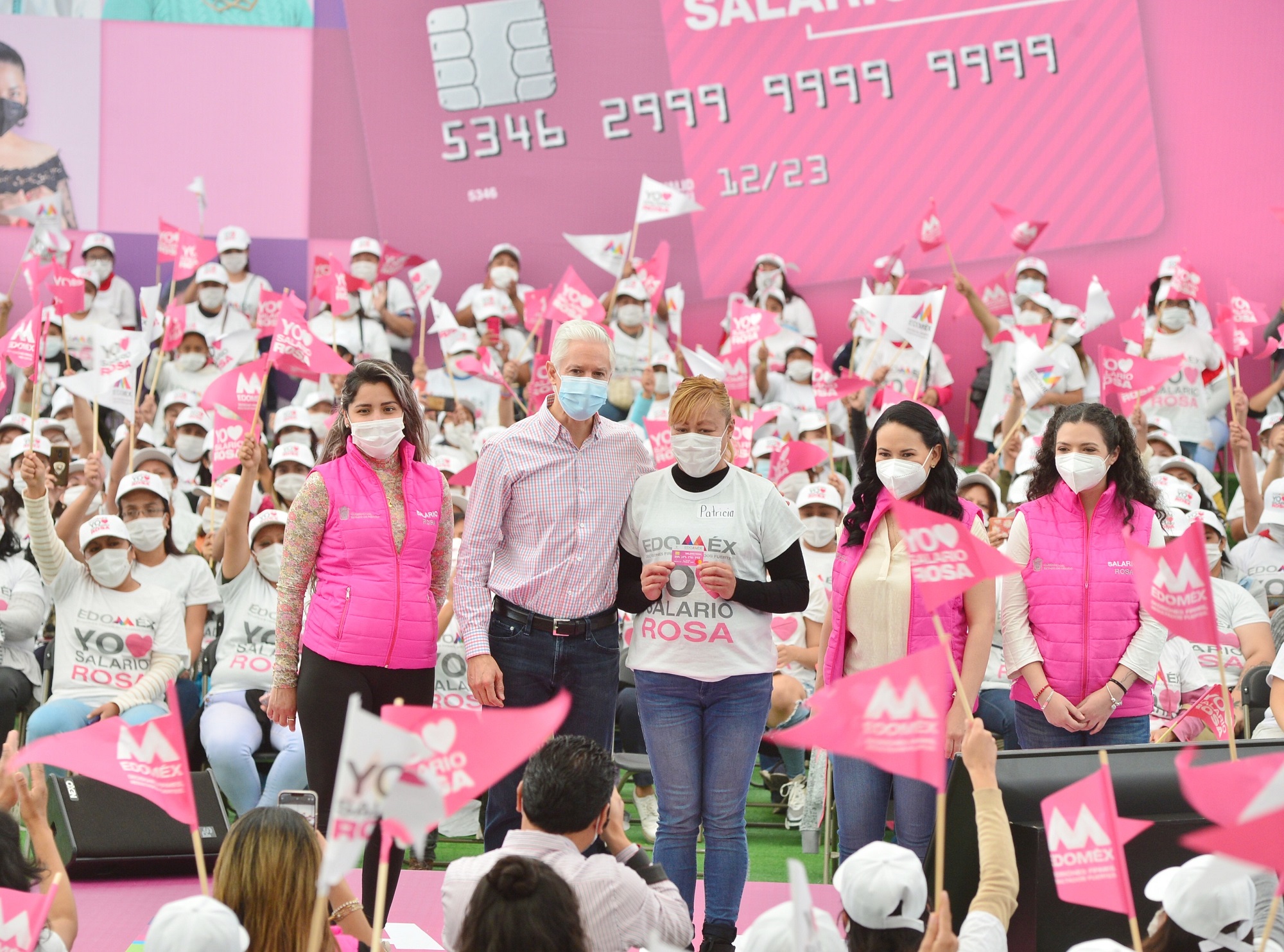 El Salario rosa es un reconocimiento al trabajo de las amas de casa, quienes lo realizan los siete días de la semana, los 365 días del año y quienes hacen rendir cada peso que llega al hogar, señaló el Gobernador del Estado de México, Alfredo Del Mazo Maza, al hacer entrega de tarjetas de este programa en el municipio de Tultitlán.