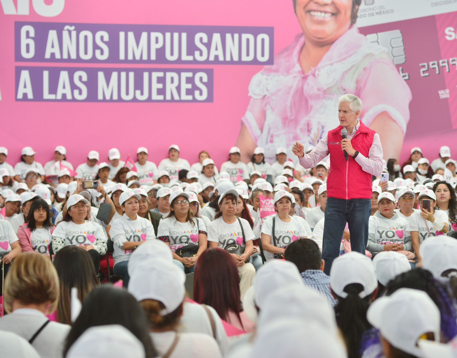 En el Deportivo Santa Cecilia, en Tlalnepantla de Baz, el mandatario mexiquense dio a conocer que durante su administración más de 700 mil mujeres contaron con el respaldo del Salario rosa, el cual tuvo como objetivo impulsar el trabajo, el emprendimiento, la cultura, educación y el campo.