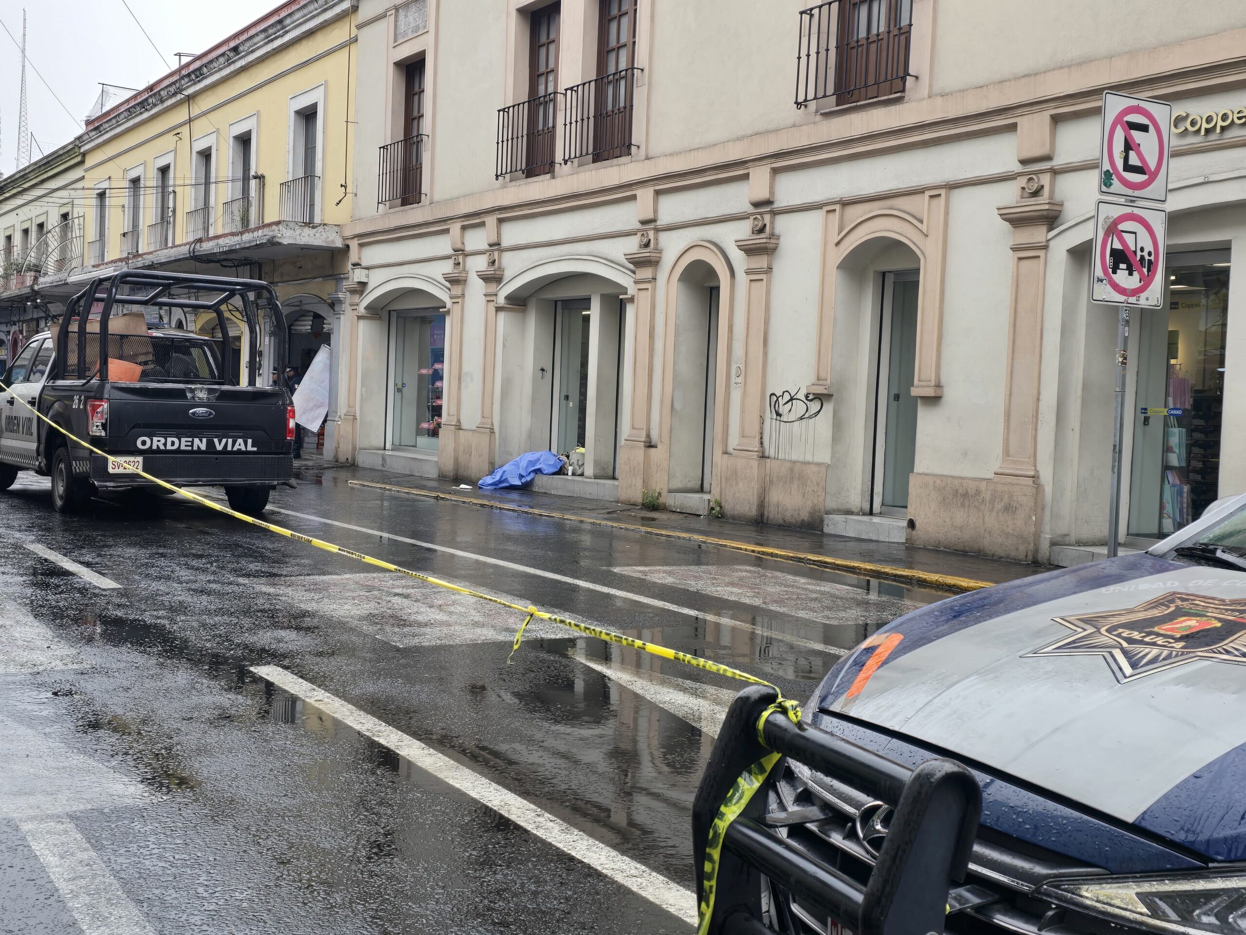 Junto a una bolsa y mochila, terminó sin vida una mujer a fuera de una sucursal de Coppel en el centro de Toluca, no ha podido ser identificada, la Fiscalía mexiquense investiga una enfermedad como la causa de muerte.