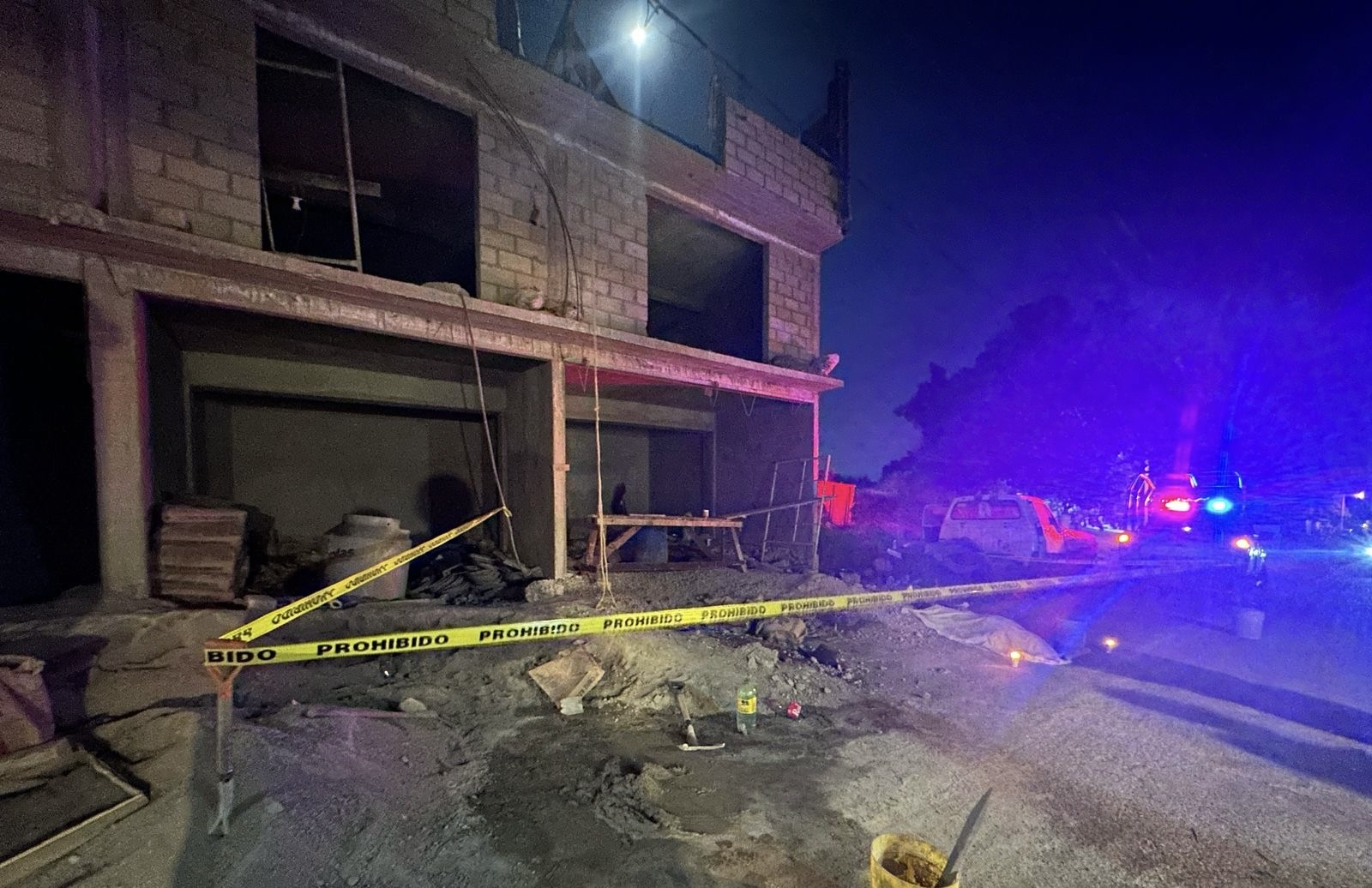 Los policías colocaron un acordonamiento en torno al cuerpo que terminó entre arena y materiales de construcción, un par de veladoras fueron puestas, mientras acudía el equipo forense para el levantamiento del cadáver.