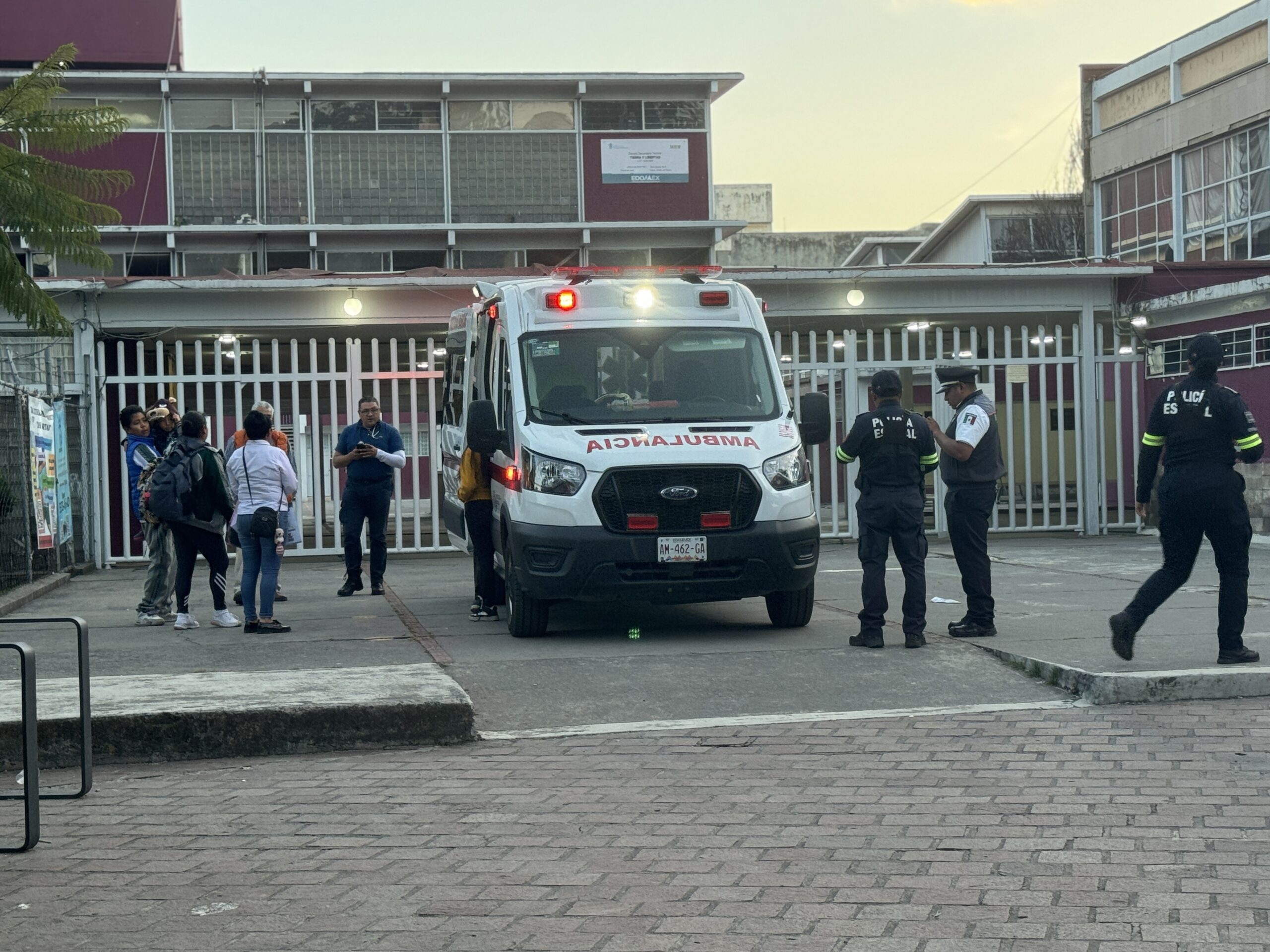 Una ambulancia del Servicio de Urgencias del Estado de México acudió al Instituto escolar para bríndales los primeros auxilios al ser alertados a través de una llamada al 911, aunque no fue necesario trasladarlos al hospital.