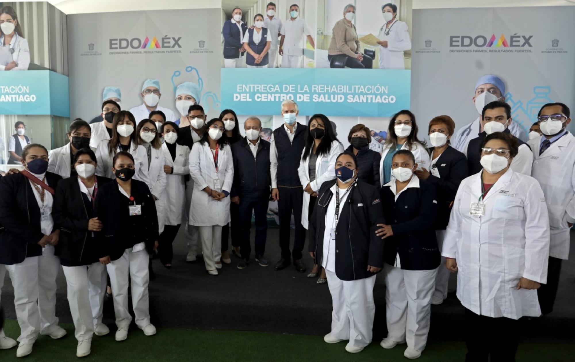 Durante la entrega de la Rehabilitación del Centro de Salud Santiago, en Zumpango, el Gobernador mexiquense agradeció y reconoció el trabajo realizado por el personal que conforma al Sector Salud, a casi dos años del inicio de la pandemia por COVID-19, situación que ha sido un reto para las familias mexiquenses, pero sobre todo para quienes cuidan de la salud de la población.