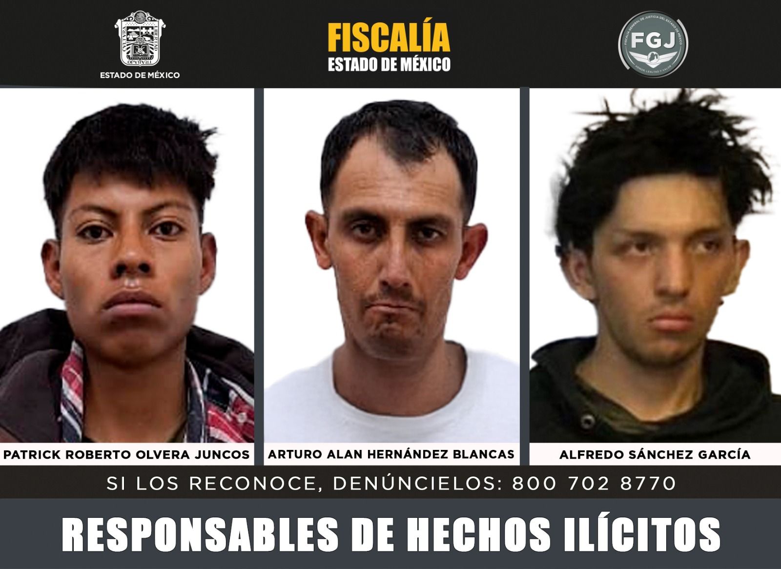 En el primero de los casos, las investigaciones efectuadas por esta Fiscalía permitieron acreditar la participación de Patrick Roberto Olvera Juncos y Arturo Alan Hernández Blancas, en hechos ocurridos el pasado 9 de octubre de 2024, cuando ambos sujetos abordaron a la víctima, quien se encontraba al interior de su vehículo, mientras lo estacionaba en la colonia Laureles, en Coacalco.