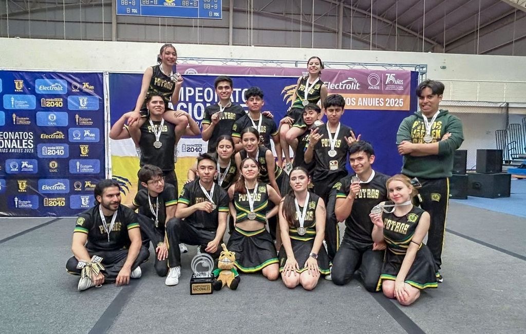 Toluca Méx.- 4 de octubre de 2025. La cosecha de triunfos comenzó para la Universidad Autónoma del Estado de México (UAEMéx) en la segunda fase de los Campeonatos Nacionales Universitarios de la Asociación Nacional de Universidades e Instituciones de Educación Superior (ANUIES) 2025, al conquistar la medalla de plata en la disciplina de Porras y Animación, Categoría Mixto, Nivel 4.