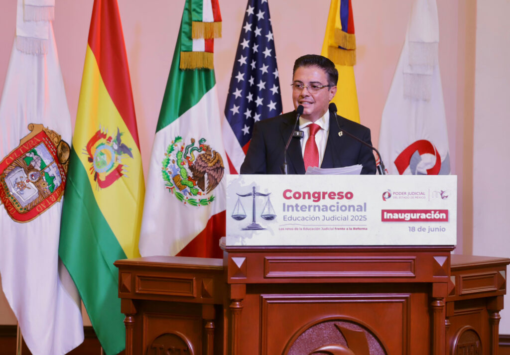 “Para democratizar la justicia, más allá de honrar el voto de confianza de la gente, estamos obligados a impartirla de manera accesible y abierta al escrutinio popular, situando a las personas en el epicentro de la transformación, celosos de nuestra vocación humanista, sabedores de que el Derecho es instrumento de cohesión social” expresó Fernando Díaz Juárez, titular del Poder Judicial del Estado de México, al inaugurar el Congreso Internacional de Educación Judicial 2025 “Los retos de la educación judicial frente a la Reforma”.