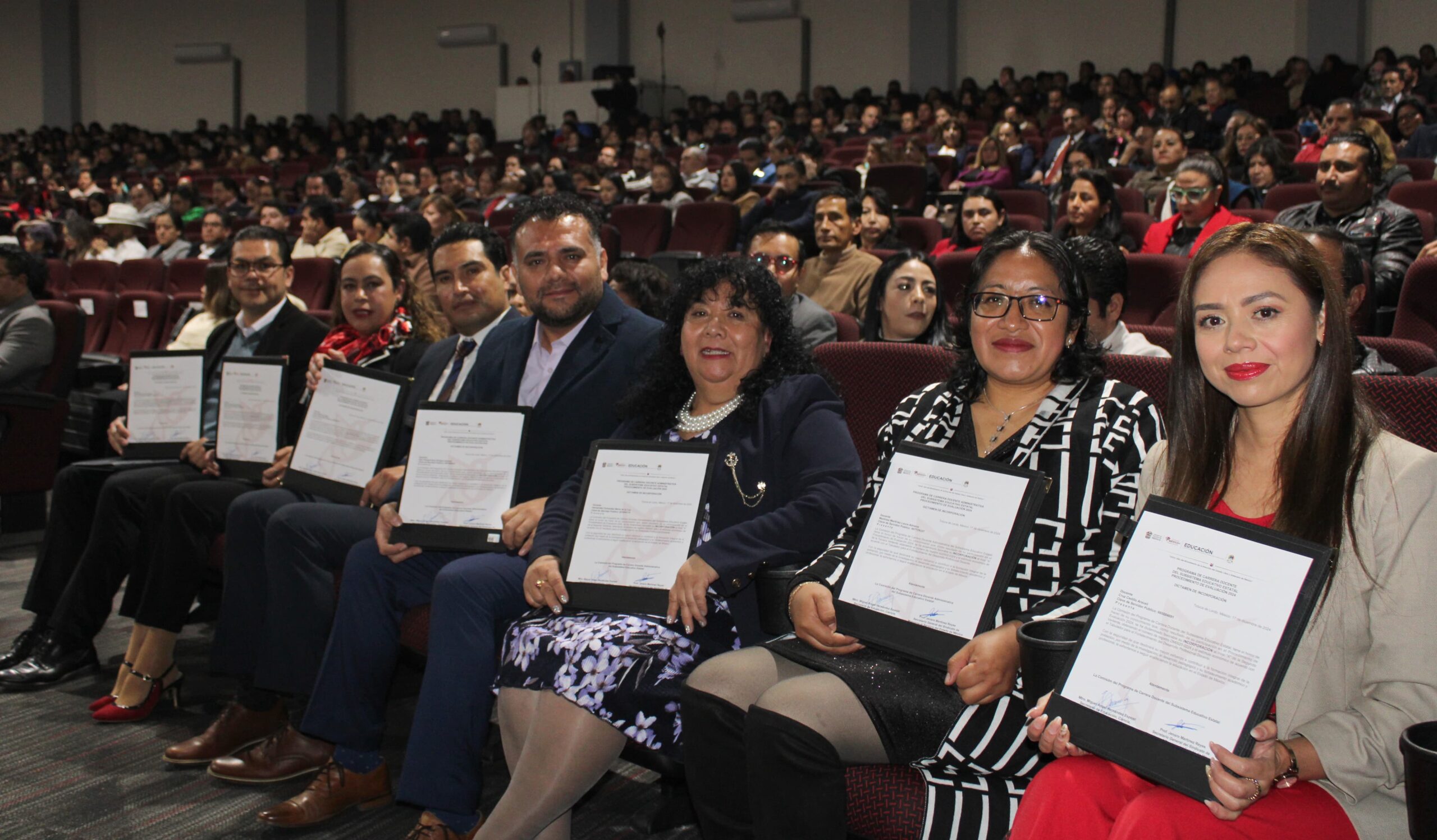 El Sindicato de Maestros al Servicio del Estado de México (SMSEM) y la Secretaría de Educación, Ciencia, Tecnología e Innovación (SECTI) entregaron este viernes 233 dictámenes de los Programas de Carrera Docente y Carrera Docente Administrativa, correspondientes al proceso de evaluación de 2024. El evento se realizó en la Sala de la Unidad Sindical “Prof. Manuel Hinojosa Giles” de la Unidad Académica del SMSEM. Los beneficiarios, provenientes de diversas regiones de la entidad, lograron su incorporación al nivel «A» de ambos programas tras cumplir con los requisitos establecidos. Desde su reactivación en 2022, estos programas se han incluido de manera formal en los Convenios de Sueldo y Prestaciones, respaldando la labor de los docentes del subsistema estatal. Durante el evento, el Secretario General del SMSEM, Jenaro Martínez Reyes, destacó que su dirigencia ha trabajado para dar continuidad a estos programas, con el objetivo de reconocer el esfuerzo profesional y académico de los docentes. Por su parte, el titular de la SECTI, Miguel Ángel Hernández Espejel, reconoció la preparación y compromiso de los profesores que participaron en este proceso de incorporación.La entrega de dictámenes fue organizada por la Secretaría de Escalafón, Periodo Sabático y Programas de Estímulos y Reconocimientos Académicos del SMSEM, como parte de las acciones orientadas a fortalecer las condiciones laborales del magisterio mexiquense.