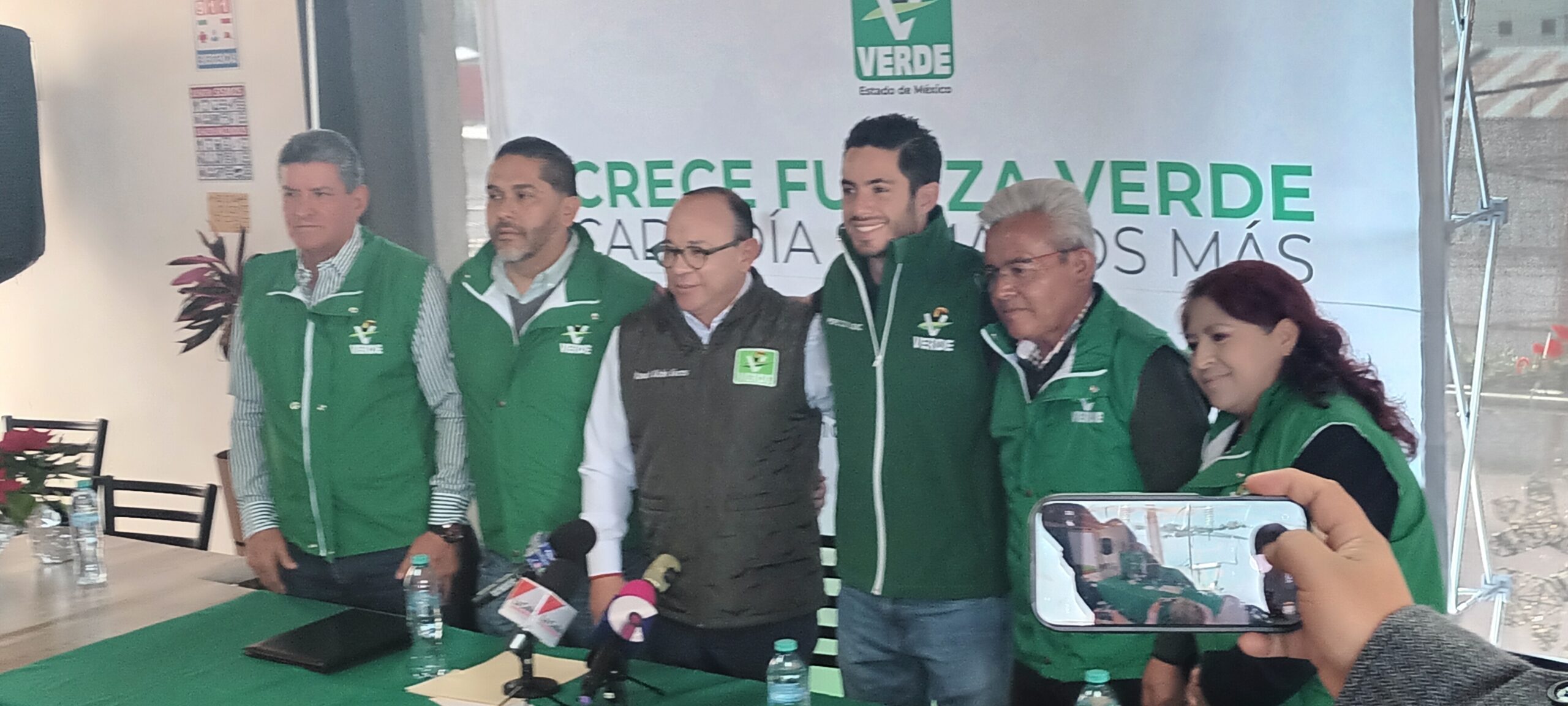 El presidente municipal de Zinacantepec, Manuel Vilchis Viveros y el dirigente del Partido Verde en la entidad José Coutolentt presentaron la adhesión de líderes políticos de la localidad provenientes de otras fuerzas electorales.