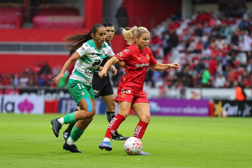 Al 31’, el cuadro mexiquense se hizo de varias llegadas por ambas bandas, donde nuestras jugadoras extranjeras concretaron una serie de pases que terminó en un remate de volea de Michaela Abam para poner el primer gol del encuentro.