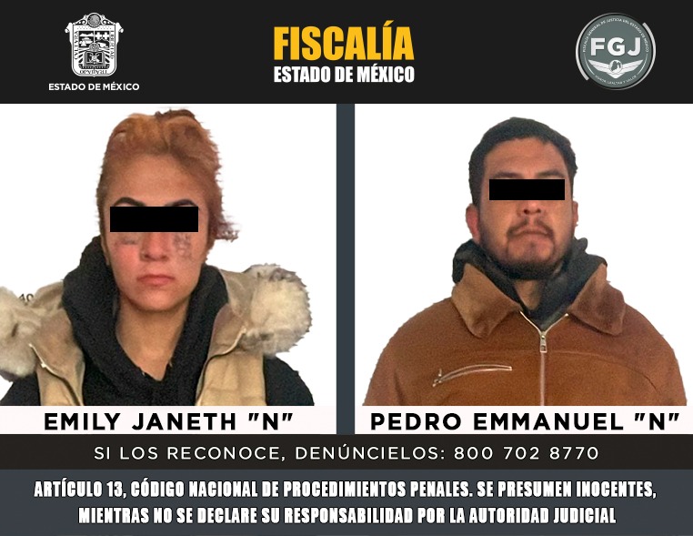 Emily Janet “N” y Pedro Emmanuel “N” fueron vinculados a proceso, luego de que una Autoridad Judicial determinó que las pruebas aportadas por la Fiscalía General de Justicia del Estado de México (FGJEM) eran suficientes para acreditar su posible participación en delitos contra la salud y trata de personas en agravio de una menor de edad, que contaba con ficha de búsqueda por desaparición.