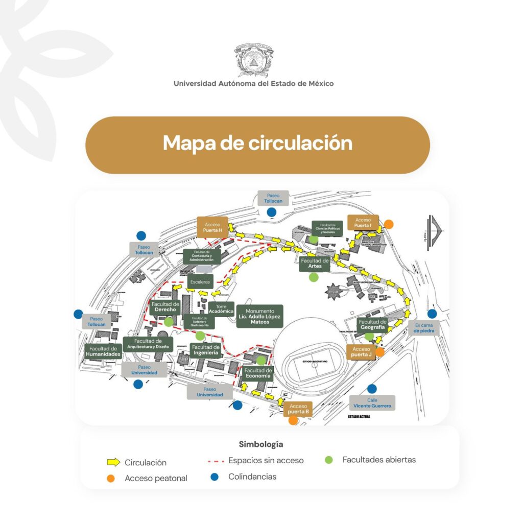 Por ahora, el acceso será únicamente peatonal y portando identificación universitaria física o digital o bien, tira de materias vigente del semestre 2025B, acompañada de una identificación oficial, por lo que se sugiere a la comunidad, tomar las medidas necesarias.