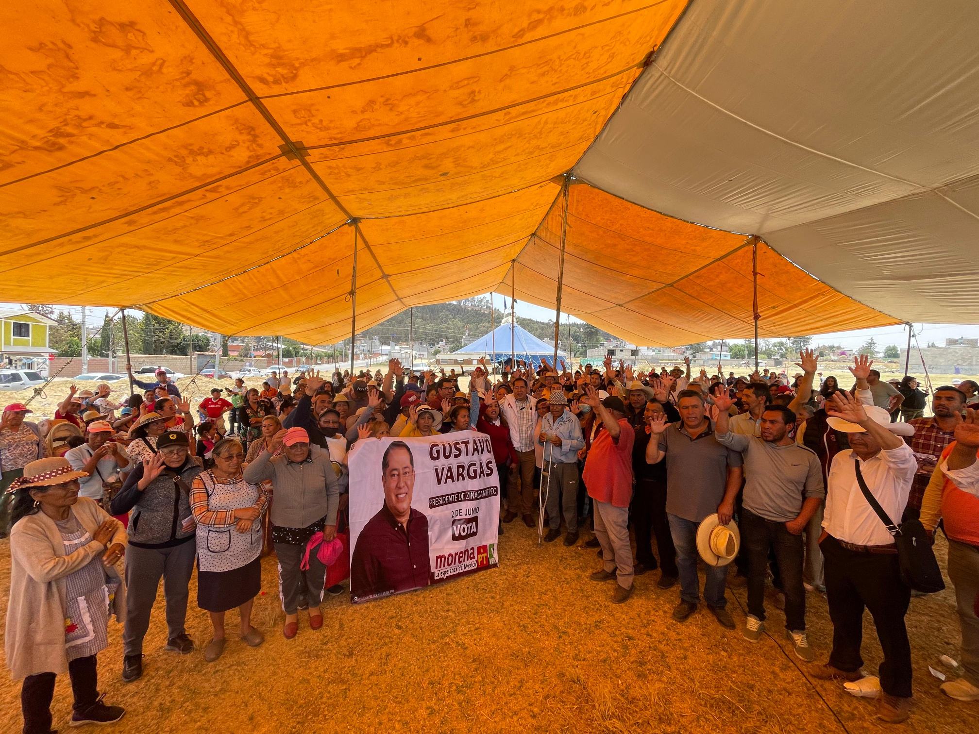 José Gustavo Vargas Cruz, candidato de la coalición “Sigamos Haciendo Historia en el Estado de México” a la alcaldía de Zinacantepec sigue recorriendo calles y tocando puertas, y asegura que el respaldo de la población lo tiene.El abanderado morenista comentó que tuvo la oportunidad de llevar sus propuestas a cientos de vecinos de las comunidades de Cerro del Murciélago, Flores Magón y Calle Bella Vista donde fue recibido con gran expectación y entrega de parte de los asistentes.Al reunirse con la ciudadanía dejó claro que su campaña no se basa en las viejas prácticas y aprovecho para comentarle a la población que todo su equipo de campaña es respetuoso de la ley y quieren un proceso electoral justo.“Nosotros estamos ocupados en llegar hasta el último rincón del municipio para hacerle llegar a la ciudadanía sus propuestas y no estamos ocupados en lo que hará o no nuestro adversario político; me deslindo de las actividades de quita de lonas, es una práctica desleal y de autosabotaje de nuestro adversario, eso, solo es reflejo de que vamos arriba en las preferencias”, mencionó.“El hartazgo de la gente es cada día más que evidente, eso nos lo dice la población, pero nos estamos concentrando en realizar la parte que nos corresponde, el próximo 2 de junio vamos a ganar con MORENA-PT-PVEM”, mencionó.Cabe mencionar que el viernes 10 de mayo, Gustavo Vargas aprovechó para estrechar la mano y brindar un fuerte abrazo a cientos de madres zinacantepequenses a quienes reconoció como valientes y guerreras, “se levantan día con día con mucha fe, mujeres trabajadoras y luchan día con día por la familia. Para festejarlas no es solamente el 10 de mayo, sino toda la vida”.