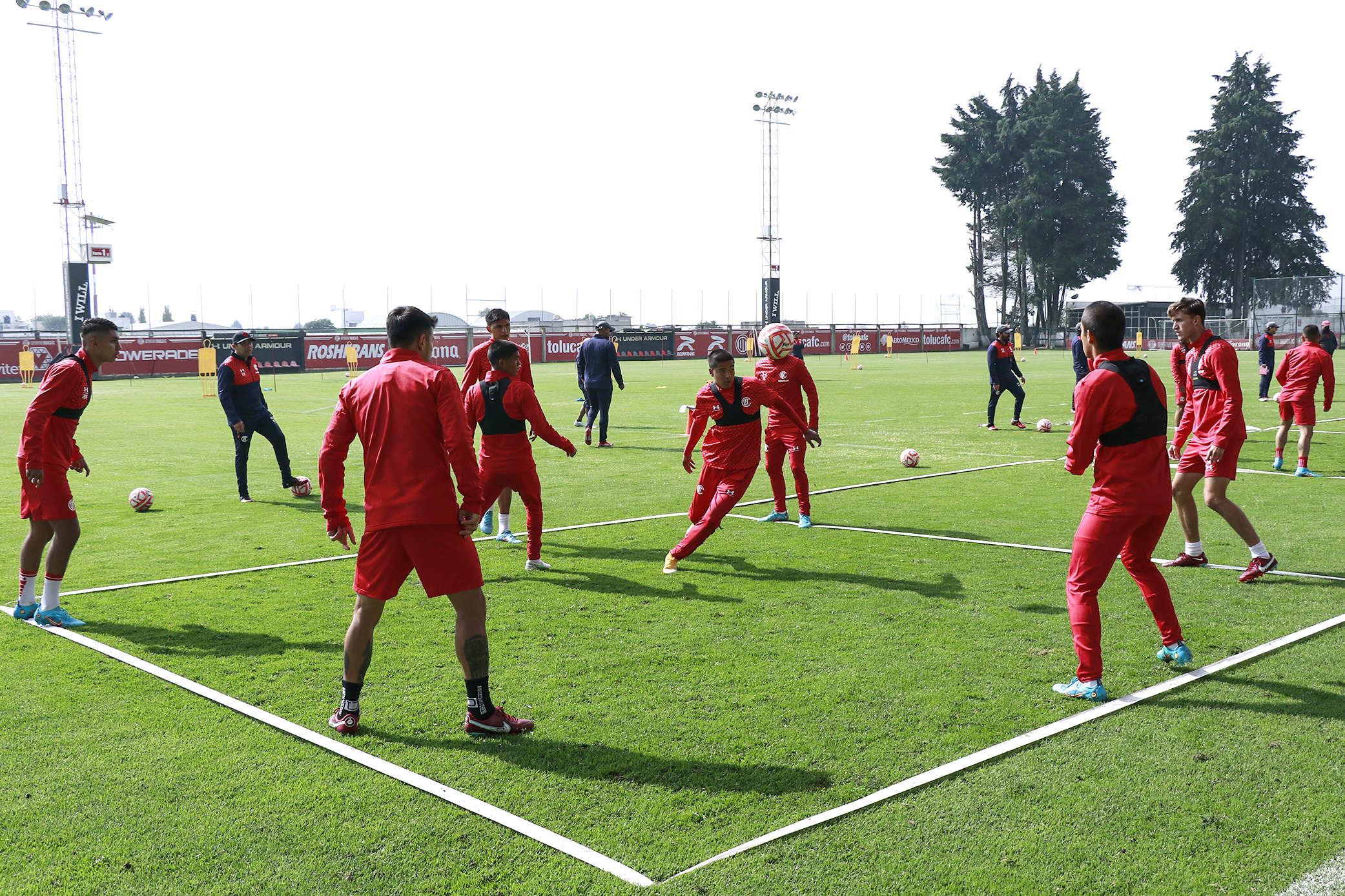 Tras cumplir el miércoles con preparar la parte defensiva en relación a lo que va a presentar el rival, Atlas, este jueves la práctica de los Diablos Rojos en las Instalaciones de Metepec se complementó al enfocarse en trabajar aspectos de su juego como la intensidad, recuperación tras pérdida y la posesión de la pelota.