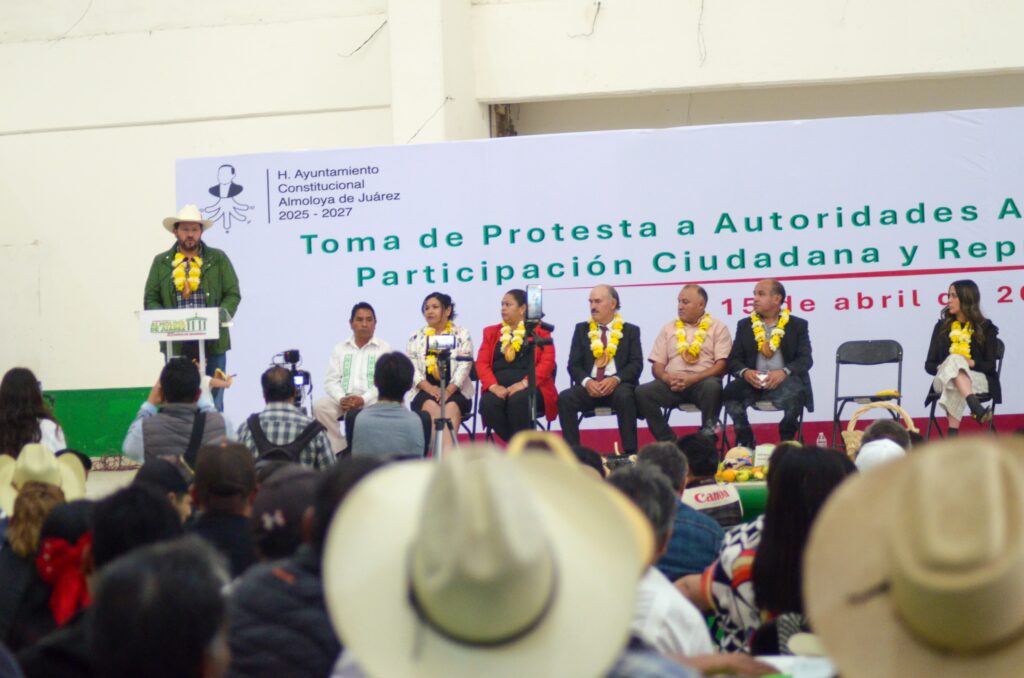 Con el compromiso de trabajar en unidad y recuperar la grandeza de Almoloya de Juárez, el Presidente Municipal Adolfo Solis Gómez tomó protesta a autoridades auxiliares, Consejos de Participación Ciudadana y al nuevo representante indígena del municipio.A ellas y ellos les garantizó que su administración trabajará a su lado para brindarles asesoría jurídica, respaldo técnico y coordinación permanente con cuerpos de seguridad.