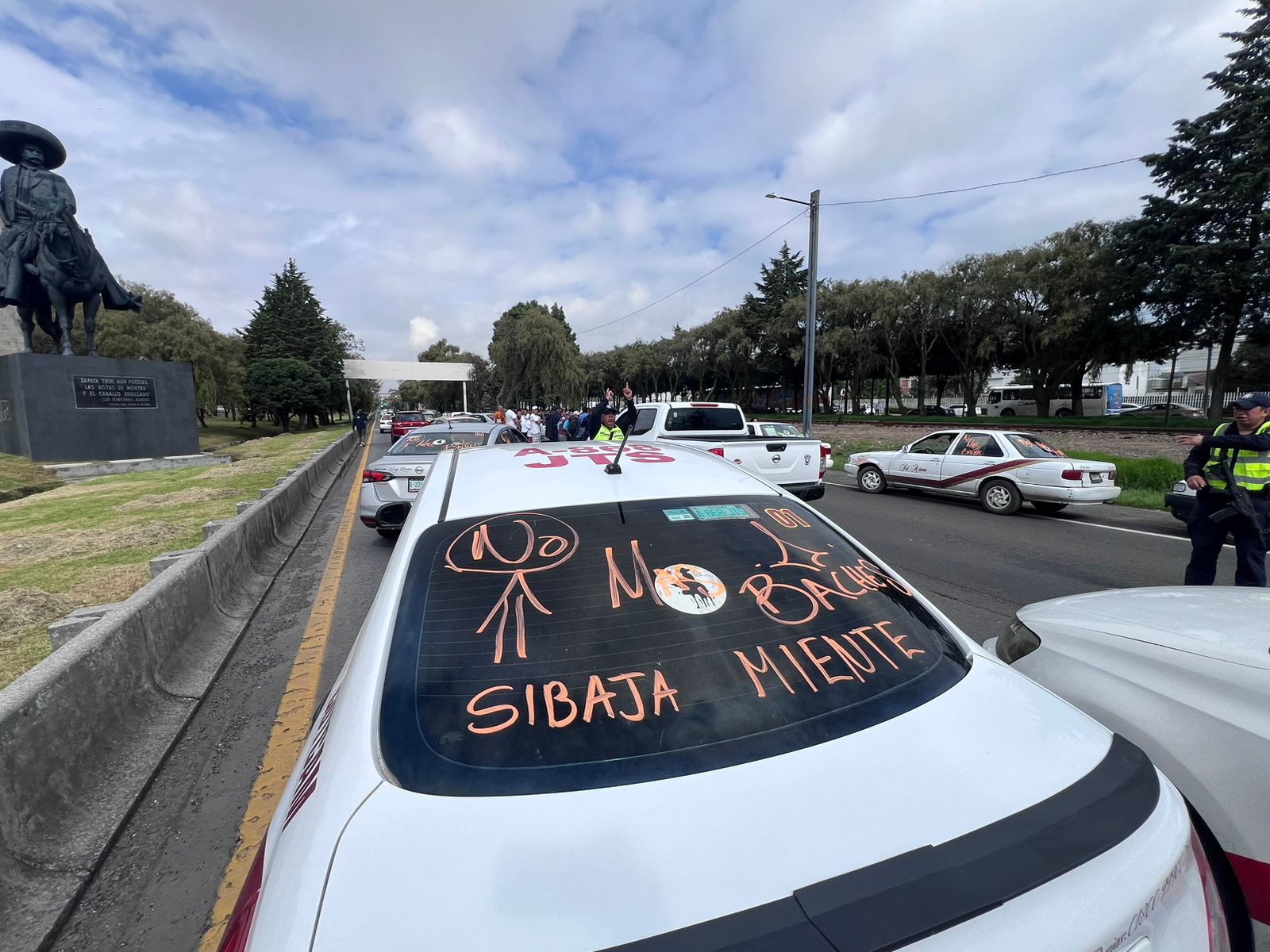Este jueces, un grupo de transportistas se manifestó sobre paseo Tollocan, en dirección a Toluca, a la altura del monumento a Zapata, para exigir la renuncia del secretario de movilidad, Daniel Sibaja.