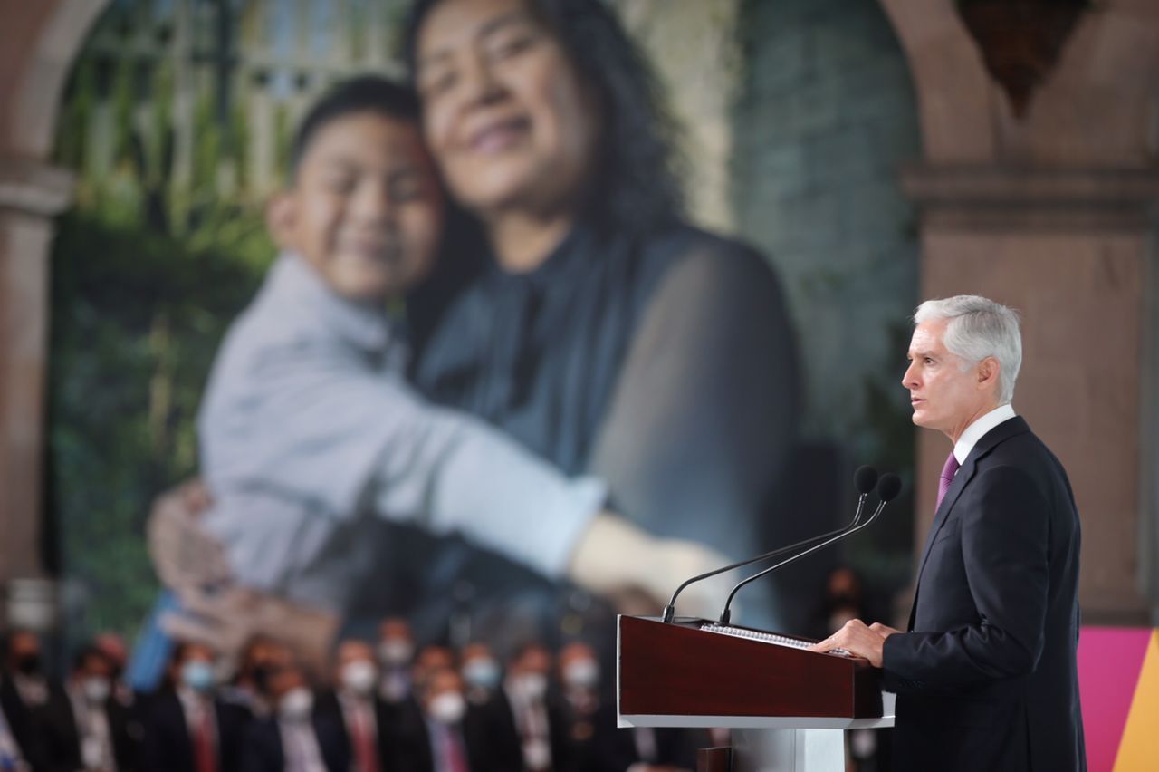 En Palacio de Gobierno, el mandatario estatal subrayó en su mensaje que su gestión se ha dedicado a atender el reto de cuidar la salud de las familias e impulsar acciones en apoyo a su bienestar, en una etapa tan compleja como lo es la actual pandemia.