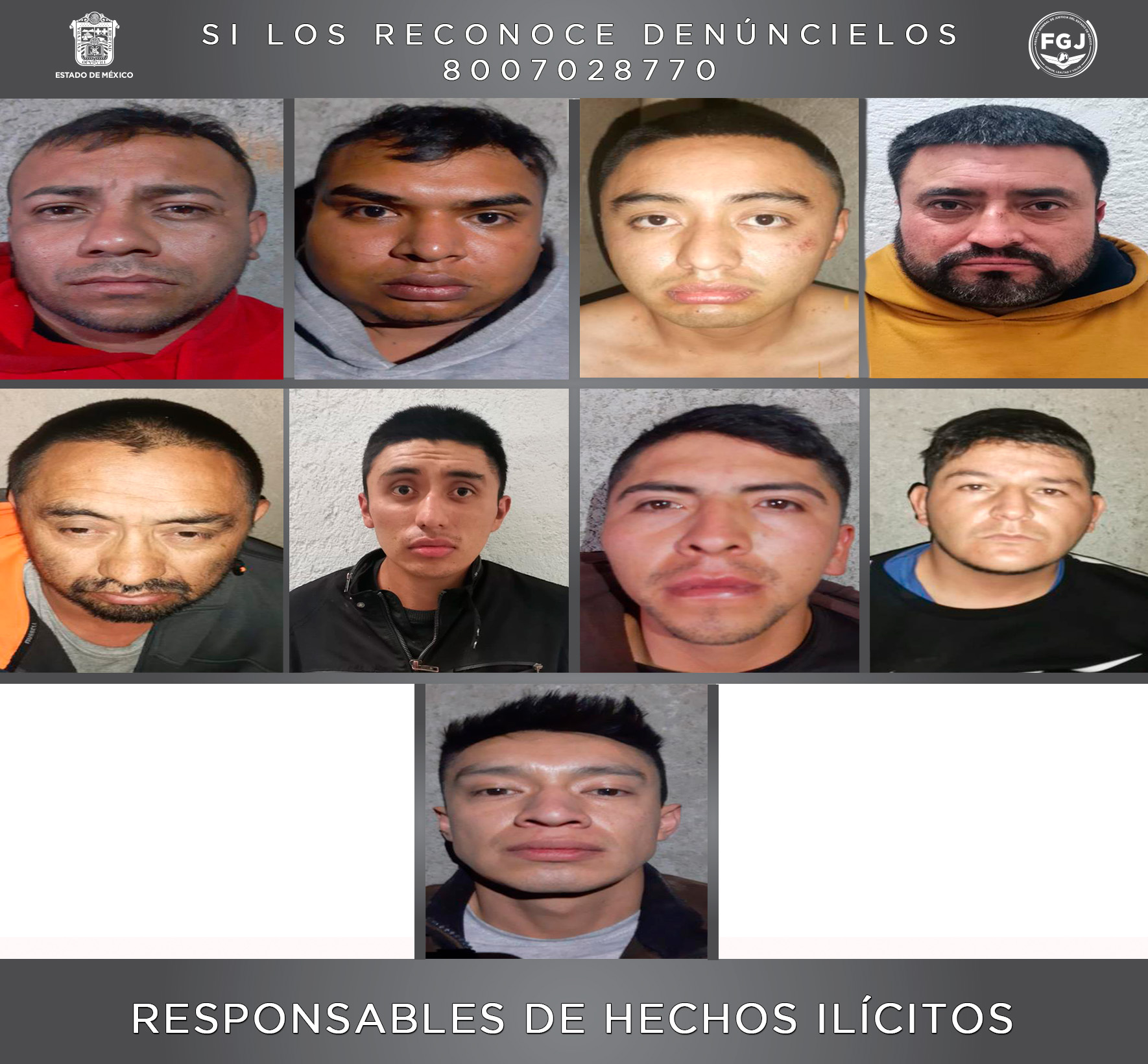 Estas nueve personas fueron detenidas en el mes de abril de 2021 por elementos de la Policía de Investigación (PDI) derivado de una investigación iniciada por la FGJEM por el secuestro de un hombre de 72 años, quien había sido secuestrado el 11 de abril de ese año.