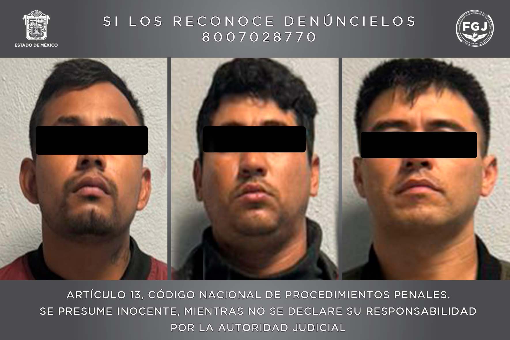 Estos tres individuos fueron detenidos el pasado 3 de agosto por elementos de la Secretaría de Seguridad estatal (SSEM) y de la Dirección de Seguridad Pública y Tránsito Municipal de Metepec, luego de que presumiblemente habían realizado detonaciones con un arma de fuego.